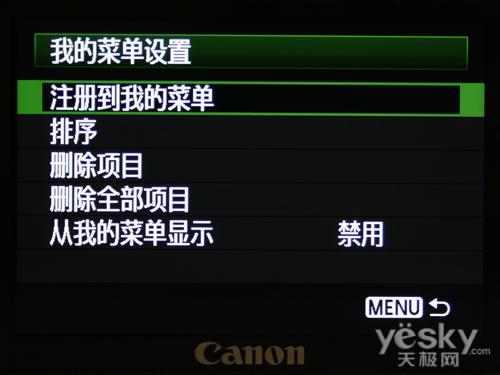 通过我的菜单界面,我们可以添加自己喜欢的功能。同时也能任意的删除,完完全全打造一台属于你自己的个性化550D。