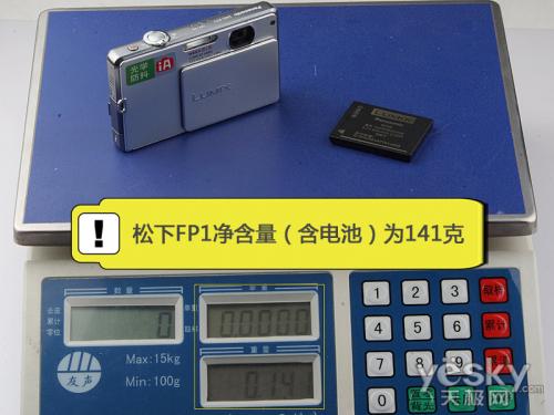 我们将松下FP1数码相机连同电池一起在电子称上称重,发现重量仅为141克,这样轻便的机身,使得我们在出游时可以完全忽略相机的重量。