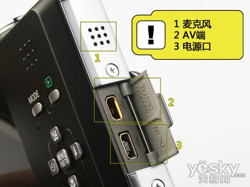 在机身的一侧设有一个电源接口,以及AV输出口,通过数据输出口用户可以便捷地将自己的作品扩展到电视以及其他第三方数码端。