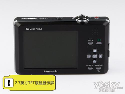 来到机身的背部,我们看到一块2.7英寸23万点LCD液晶显示屏占率了大部分的空间。这样一块大众化的显示屏也突出了松下FP1的高性价比路线。