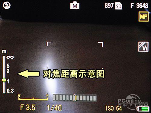 默认状态下,理光GRD III的左方向键,也就是Fn1键,为手动对焦的开关键,按一下之后,拍摄画面的左边就会出现对焦距离示意图,然后通过上下键便可以调整对焦距离了。