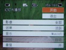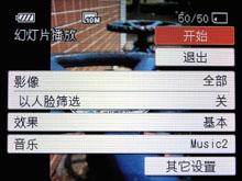 音乐“串片秀”功能可实现照片MTV般的播放效果。将拍好的照片,配合自己喜欢的音乐在相机中回放,实现动感的观赏效果。 在五种可视化效果(基本、简单、怀旧、活跃和时髦)基础上增加了“人脸1:基本”、“人脸2:怀旧”和“人脸3:时髦”共八种效果。通过对比W130与W170幻灯片播放的设定可发现,索尼W170对人脸识别部分的功能加强了。