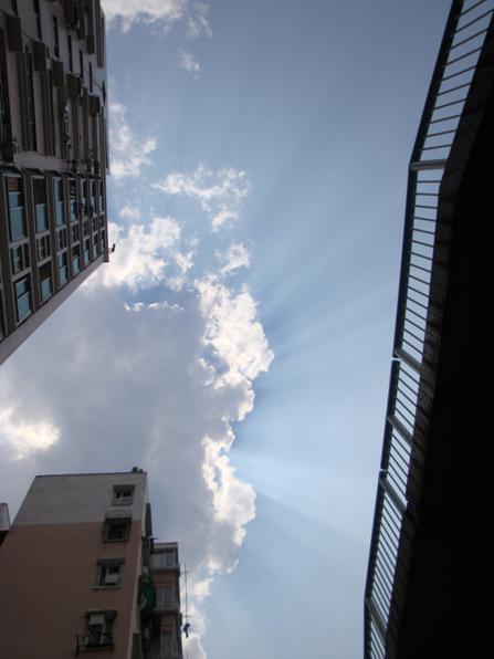 “六月的天,就像孩子的脸”,最近广州的天气都并不稳定,时而晴朗时而雨下个不停。某一天傍晚,雨后天晴和日落交集,天边出现了绚丽的颜色。当时只是用了风景模式或者P档拍摄,颜色表现得十分鲜艳,直到日落余辉出来,手持发抖的时候。