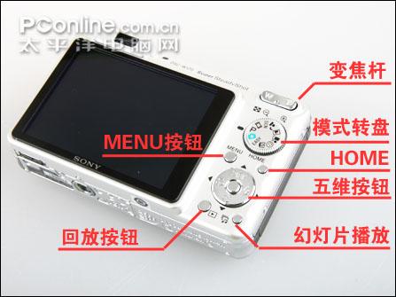 索尼W170的按键设计与其他W系列机型相似,模式转盘融入了诸多的实用快捷功能,能使用户操作起来十分便捷。值得一提的是,个别小型的按钮手感一般,快门按钮的半按键程设计也过长,不过不排除个体性差异的问题。独立的音乐幻灯片按钮安置在右下方,其重要性可见一斑。