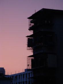 拍摄这张照片时,只为了记录下天空与剪影的关系,但当笔者企图把视角抬高的时候,对面马路的高楼顶进入了镜头的视野,广角的魅力在这里体现了出来。