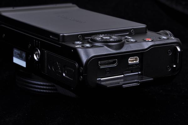 在机身的两个侧边,并没有过多冗杂的设计,只在右手手柄侧后方,开了一个小的舱盖,下面收纳了这台机器的一个USB数据传输充电接口以及一个HDMI接口。