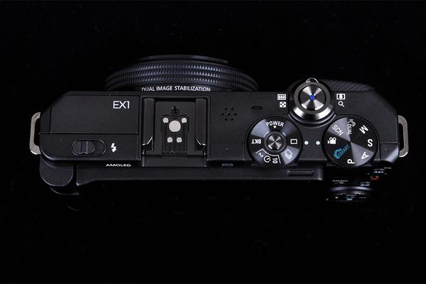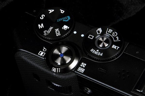 三星EX1在机顶快门处,设计有两个功能模式转盘,摄影师在使用中可以方便的依拍摄需要迅速的做出模式的转换。同时该机为用户提供了P、A、M、S专业摄影师通常会用到的拍摄模式。