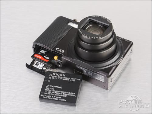 理光CX2使用DB-70的锂电池,容量为940mAh,虽然使用了3.0英寸的大屏幕,但是续航能力还是比较好的。另外机身提供了88MB的内存和使用SD和SDHC卡作储存介质,88MB的机身内存能起到一定的应急作用。