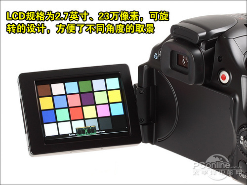 佳能SX双位数系列一向都带有可多角度旋转的屏幕,SX30 IS也不例外。SX30 IS屏幕比SX20 IS稍大一点,规格为2.7英寸23万像素,带有抗反射镀膜,阳光下观看效果不俗。