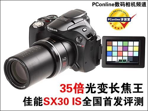 佳能SX30 IS是首款光学变焦达到35倍的数码相机,也是现时为止光学变焦倍数最大的数码相机。SX30 IS的35倍光变镜头覆盖24-840mm等效焦距,最大光圈F2.7-5.8,配备1410万像素CCD、2.7寸23万像素可旋转LCD,拍摄720p高清视频时还可以进行光学变焦和连续自动对焦。