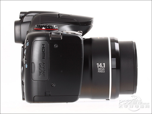 从机身正面以及背面看,佳能SX30 IS真有半分EOS机身的味道,尤其是机身顶部、肩部的线条。