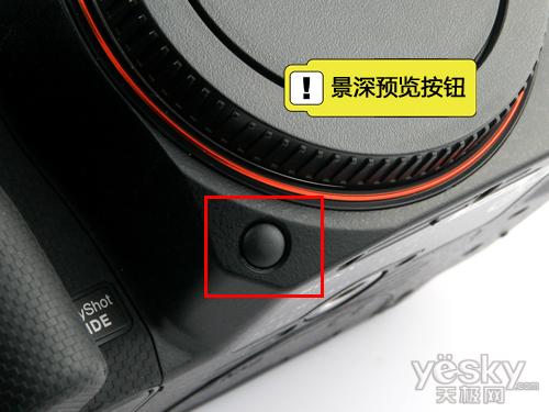 首先我们看到,在实时取景的过程中。我们可以通过机身下方的景深预览按钮来查看当前光圈下的图片实情,便于我们在按下快门前更好的对相机进行调整,这在单电相机中还是首次出现。