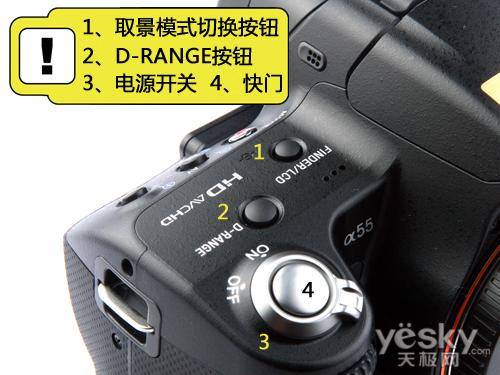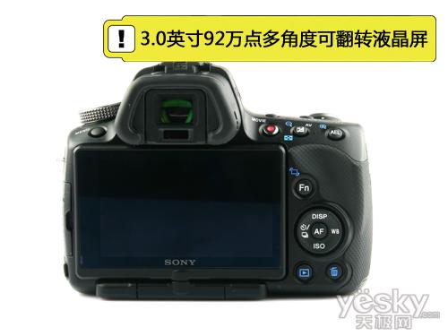 从机身的顶部看来,索尼A33还是设计了许多功能的快捷按钮,这样还是相当适合初学者使用的,接下来我们来看看A33机身背部的设计。
