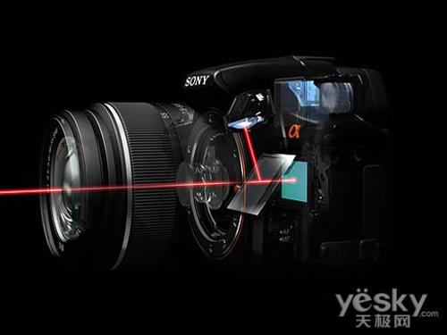说起索尼A33,其核心莫过于半透明反光板的设计。有别于传统的单反相机,A33取消了五棱镜结构。通过一块固定的半透明反光板,70%的光线直达传感器还有30%的光线直达对焦模块,从而使A33的跟踪对焦连拍速度达到每秒7张,成为了APS-C画幅之最。