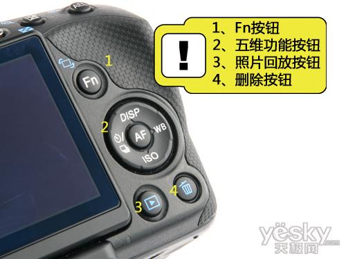 在液晶屏的旁边就是索尼A33的主要功能按钮区,在其上面是一块边缘稍稍凸出的手握区。这样的设计保证了我们舒服的拿捏手感。从A290/A390开始,索尼就开始对相对入门的产品提供中端产品才有的舒适手柄。