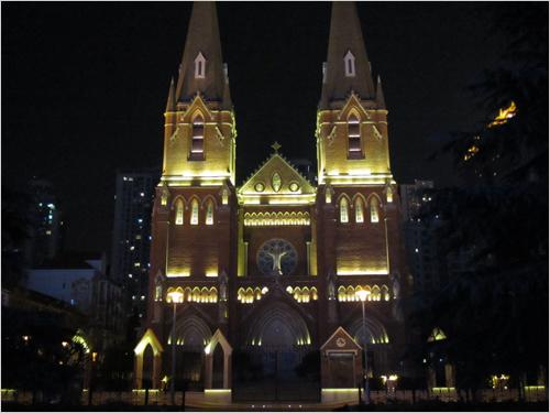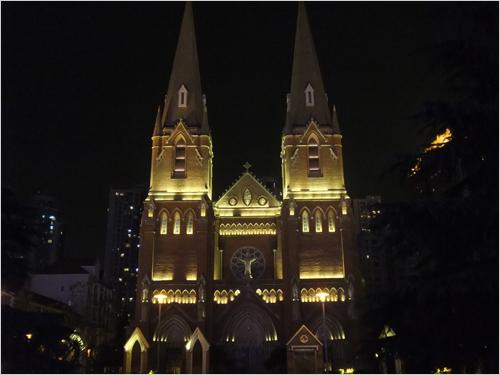 由于教堂周围环境灯光稀少,光源方面仅有教堂自身的照明灯光,所以对相机曝光控制有着极大的考验。色彩方面,松下FX 700和三星ST600饱和度较高,色彩鲜艳,而索尼WX5画面对比控制较好,噪点抑制能力强。