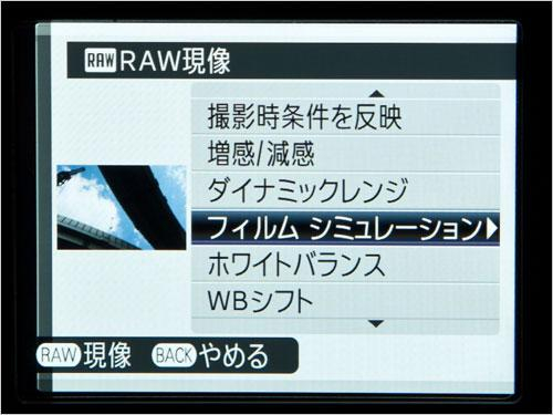 除此之外,当你拍摄了RAW格式图像后,你依然可以通过后期功能为照片添加上胶片模拟效果。你可以在拍摄完RAW照片后,进入回放修饰菜单,再决定是否想为照片增加胶片模拟效果。但是这里笔者要提醒一下读者,每张RAW格式照片在修饰完毕后会生成一张JPG照片,且不可恢复,所以使用时要格外小心。