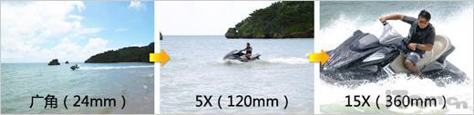 24mm广角效果;一般5倍光变相机效果;15倍光变可以让拍摄主体更大