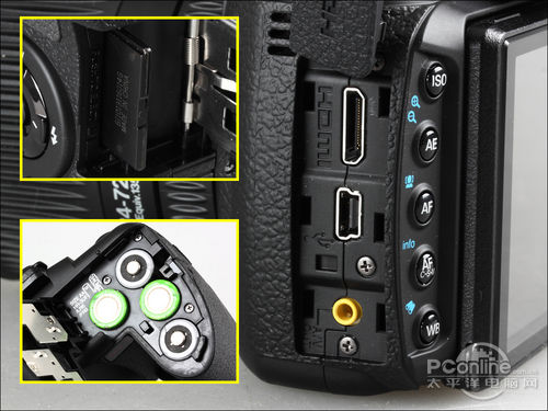 富士HS22 EXR的存储卡仓、电池仓与数据接口