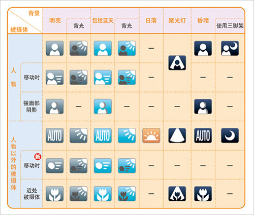 “智慧AUTO”模式(智慧自动拍摄模式),综合了面部优先、降噪、运动检测与场景检测四项技术,使相机在“智慧AUTO”模式下可随时对所要拍摄的影像进行智能判断与分析,并选择出相对适合的方式进行拍摄,同时对所拍摄后的图像做出优化处理。以上全部的设置均由相机自动完成,拍摄者只需轻按快门,就能在不同场景下拍下清晰美丽的照片。