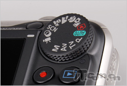 机身右侧模式转盘设有M、A、T、V、自动模式、简易拍摄和常用的人像风景等模式,但是用过程中,这个转盘手感比较生硬。下方的导航键也加入了宣传模式,在回放照片是相当方便,但有一点小编并不太认同,SX 220HS导航键上并没有标注快捷模式图标,而是采用了感应模式,手指轻触即在显示屏上显示。