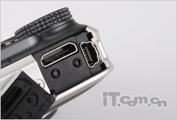 模式转盘旁则是数据线接口,SX 220HS支持FULL HD全高清短片拍摄,自然不能少量HDMI高清输出这一个接口了,USB接口则支持2.0高速传输。电池仓也继续延续了SX 210IS的设计,储存介质上SX 220HS支持SD、SDHC、SDXC,为高像素拍摄的储存速度上提供了很好的保障。