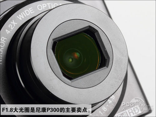 尼康P300具备一枚4.2倍光学变焦、最大光圈F1.8的镜头,焦段涵盖24-100mm(等效135mm),最近对焦距离为3cm,并带有VR防抖能力。这样的镜头规格不错,但这枚经镜头并没有使用静音马达,所以在拍摄视频时,镜头变焦产生的声音会有对视频有一定的影响,但影响程度不大。