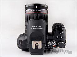 从外观造型上来说,富士HS22EXR和上一代产品富士HS11EXR并无太大的出入,无论是宽大的蒙皮手柄或是机背复杂的功能按键,让相机与数码单反相机神似相近,此外相机只提供了黑色配色款,更是加重了HS22EXR的专业气息。除此之外笔者还注意到,HS22EXR还在机顶配有外置热靴,用户可以通过购买外置闪光灯与HS22EXR配合使用拍摄。