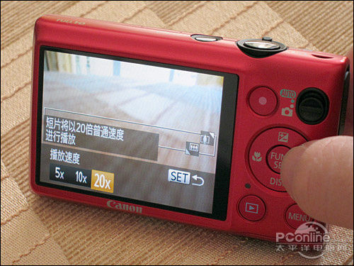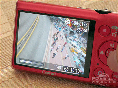 刚才说过,我们可以对拍摄出来的视频进行播放速度的调节。IXUS 220 HS提供三种播放速度,分别是5、10、20倍。简单来说,如果我们选择10倍播放速度,当我们拍摄100秒的视频后,视频在回放时(无论是在相机上还是在电脑上回放),视频的全长会变成10秒,画面上会动的物体,移动速度都会提升到原来的10倍,效果相当有趣。拍摄行人,比较适合用5或10倍速。