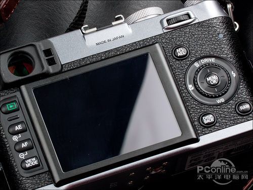 富士X100机身背面右边安排了带转盘的十字键、十字键中间的菜单/确认键,以及上下的曝光/对焦锁定键、显示/返回键、RAW键,问题就出现在十字键中间的菜单/确认键上。由于操作上的缘故,X100需要经常进入菜单当中进行调整设置,菜单键是最常用的按键之一,但该菜单/确认键却设计得过于小巧,不少亚洲用户都抱怨拇指比较难准确地按下这键(更别说欧洲用户了),经常会误按上面的驱动/删除键或者下面的白平衡键。