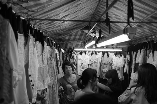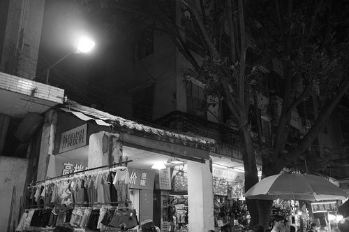 夜市的景色(能叫景色吗?),相对昏暗的光线、杂乱的色温,对相机的考验都是相当巨大的。我一直没有拍摄黑白照片的习惯,这次倒想试试富士X100在黑白模式下的表现。