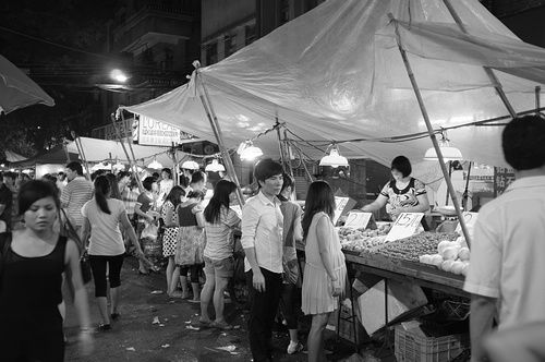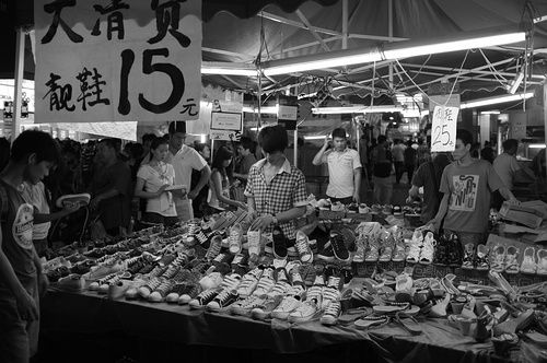就在我自己所用的苹果27寸屏幕上观看,这组夜市的黑白照片显得很吸引,画面当中明暗反差控制良好,画面的立体感也不错。但是在公司里面,其他同事屏幕上看到的画面就明显发灰,感觉也就差了不少。