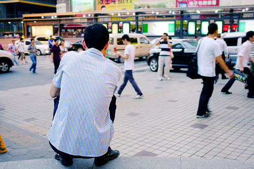 其实这是我第一次这么长时间的去尝试拍摄这样题材的照片,所以心里的怯懦总是难以避免,拍摄角度上总是不太敢正面拍摄(要知道在中国,谁也说不准你正在拍的人是怎样的)。而我也尝试过先询问再拍摄,但通常被拒绝的居多。不过用富士X100拍摄,其轻便和低调的优势确实不能忽视。
