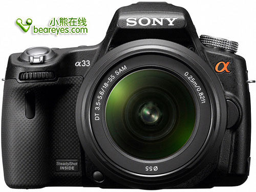 索尼α33的最大特点就是采用了半透镜反光板,SLT则正是Single Lens Translucent的英文词头缩写,由于相机采用了一块固定式半透明反光板,将少部分光线反射至AF传感器,其余光线通过反光板到达图像传感器成像,拍摄时采用实时取景,无论在拍摄照片或视频中均可使用全时相位检测式自动对焦系统。目前α33单头套机(配18-55mm镜头)的售价为3960元。