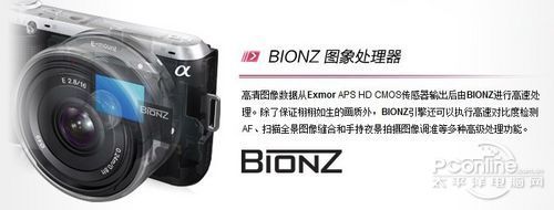 处理器方面,依然采用索尼BIONZ图像处理器,能保证画面的的杂讯降到最低,NEX-5的优秀高感光度表现已经印证了这一处理器的强大性能,这次换了全新的感光元件,我们也期待NEX-C3的优秀画质表现。
