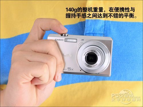 轻薄便携算是卡西欧EX-ZS10的一大特点,即使装上电池和储存卡之后,整机重量也只有在140g左右,对于一台使用金属外壳的卡片机来说,持机手感和便携性已获得不错的平衡。