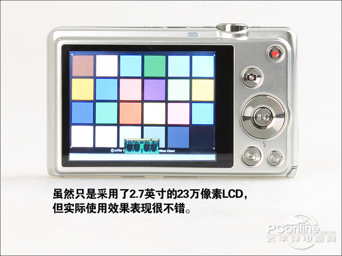 在屏幕色彩还原测试中,小编对于卡西欧EX-ZS10的表现是满意的。虽然只是一块2.7英寸23万像素的液晶显示屏,但对于事物的色彩还原,已经有着较为准确的表现力了。即使屏幕的亮度不可调整,胜在饱和度的还原适中,十分接近肉眼所见。