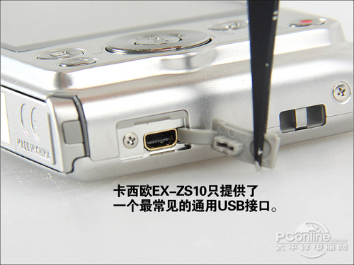 在外接端口方面,卡西欧EX-ZS10只提供了一个通用型USB接口以便用户连接电脑使用。