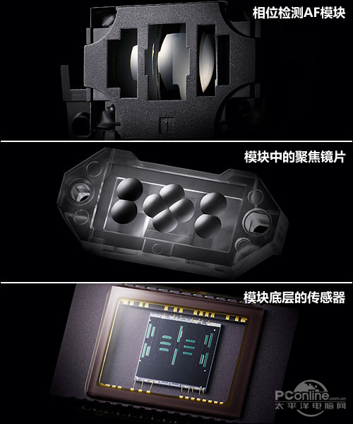 对比侦测AF在单电/微单刚发展时,AF速度是相当慢的,跟单反的相位检测AF完全不能比。但是可换镜头电子取景是一大趋势,为了让其产品获得更为理想的AF速度,索尼突发奇想地使用“失传”多年的半透镜技术,让本身完全投射到图像传感器上的光线,部分反射到机内相位检测AF传感器上,以获得相位检测AF性能。