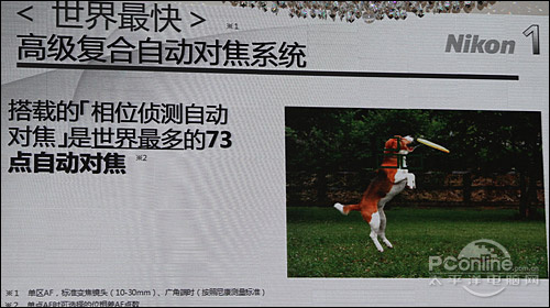 虽然现时奥林巴斯和松下都可以通过算法的改进和硬件的升级,获得超越入门级单反的自动对焦速度(试用对比侦测AF),但尼康单电的复合自动对焦系统还带有一个重要特性,就是对焦点达到惊人的水平。在对比侦测AF时尼康单电可选择135个对焦点的其中一点进行对焦。在相位检测模式下也到达73个对焦点,远超自家D3S/D3X/D700的51点AF。更多对焦点的好处相信也不用我多说了吧?