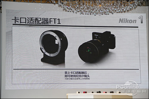 与索尼NEX差不多,尼康单电也可以通过一个转接环实现与自家F卡口镜头的使用。不过尼康单电并没有机身对焦马达,该转接环也没有对焦马达,所以没有AF-S超声波对焦马达的F卡口镜头就不能实现自动对焦了(这也比较正常啦)。
