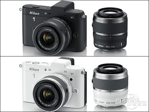 尼康V1带有黑白两种机身颜色,搭配套机镜头也有对应的色彩