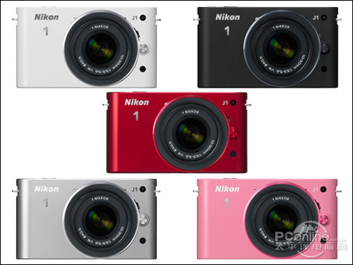 尼康J1带有5种机身颜色(其中粉红色为限量版),搭配套机镜头也有对应的色彩