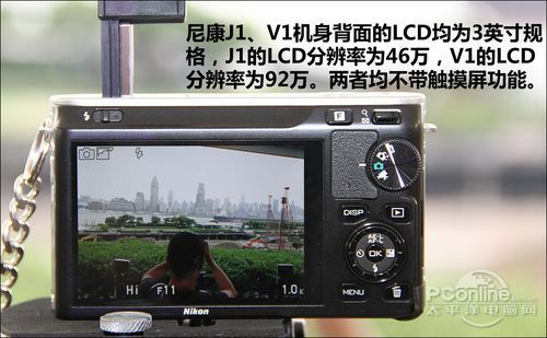虽然尼康V1、J1两者的LCD都是3英寸货色,但是为了作出区分,V1 LCD分辨率达到92万,而J1 LCD则只有46万。并不是说46万像素的LCD有多不好,只是把V1、J1两机放在一起就会感觉到V1的画面明显更细腻。其实92万跟46万在成本上应该差别不大吧?另外,两机LCD都不带触摸功能。