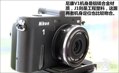 相信有不少用户会关心机身材质的问题,毕竟这跟机身手感、耐用度会有较大关联。尼康V1机身材质是铝镁合金,J1则是工程塑料。V1定位中高级,使用金属机身也比较合理。J1有多种机身颜色,使用工程塑料较容易制造,而且J1不同颜色的机身,表面质感也是不同的,例如黑色银色机身表面是磨砂的,粉红色机身表面是钢琴漆面的。