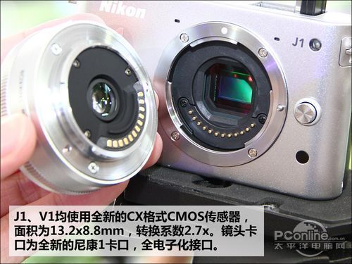 尼康V1/J1采用特殊尺寸的图像传感器,13.2mm x 8.8mm的面积比M4/3系统要小,但也远远大于消费类数码相机的水平。由于关键的传感器比普通单电要小,所以在机身体积连带所用镜头的体积上,尼康单电都有很高的“瘦身潜力”。尼康声称要打造一个有别于数码单反与消费类数码相机的全新产品系列,为的是让广大摄影爱好者能更好地体验摄影的快感,并乐于将照片与人分享。
