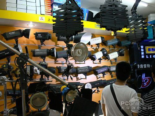 在这里专业的摄影器材同样很多,专业的闪光灯、背景布、灯架都一应俱全。如果你想打造自己小小的摄影棚,在这里可以找到摄影棚所需要的所有工具。