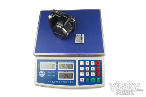 奥林巴斯SP-810UZ的称重,机身(含电池)的重量仅为422克,携带起来还算方便。