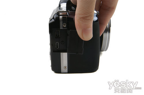 在奥林巴斯SP-810UZ机身右侧是各数据输出接口所在之处,有HDMI及USB接口。USB接口不仅可以传输数据,也可以作为充电接口之用,使用非常方便。