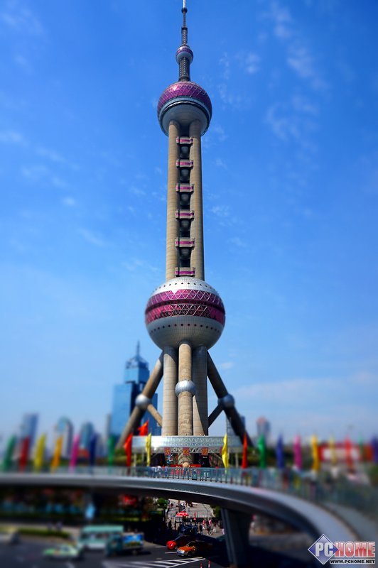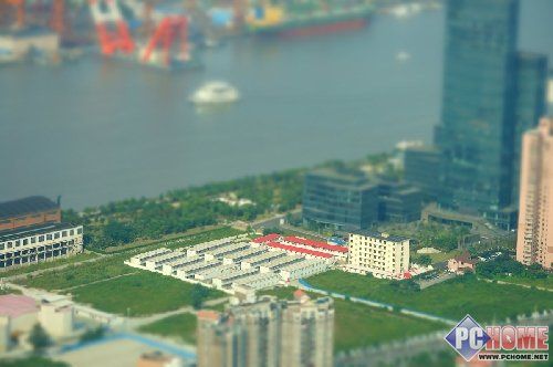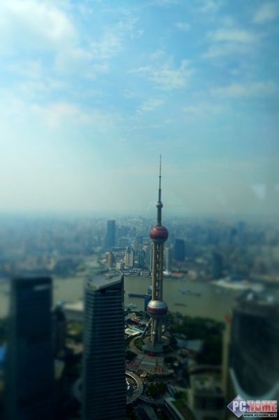 索尼NEX-5N的微缩景观模式,简单来说就是只清晰显示横向或纵向的一条区域,而其他区域均以模糊显示,同时强化照片的色彩,让物体看上去颜色更鲜艳,更接近玩具的质感。像上图那样,笔者只让照片中央区域的东方塔清晰明珠显示,虽然模型的感觉并不是特别强烈,但是效果也非常有趣。